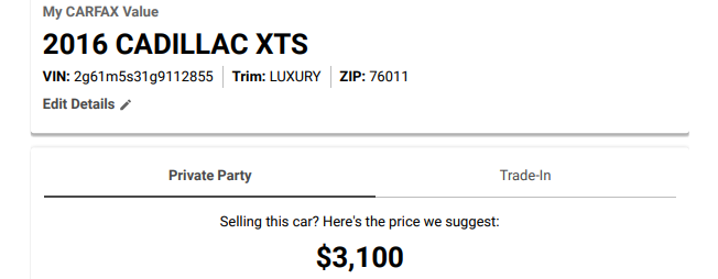 2016 CADILLAC XTS, 215475 MILES, ***CLEAN TITLE*** RUNS AND DRIVES GREAT!